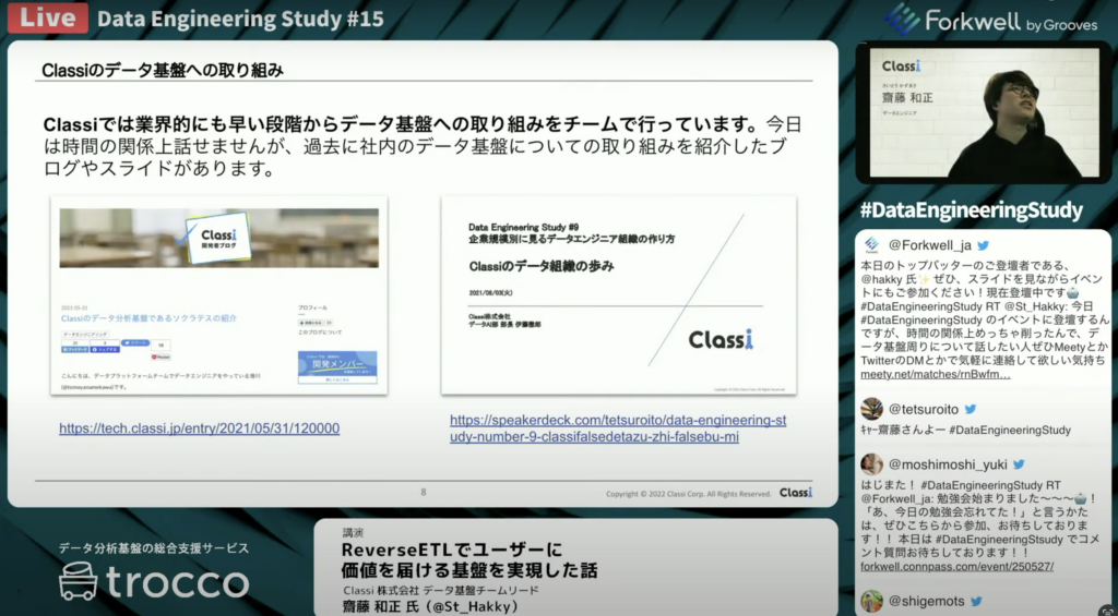 齋藤 和正氏:「Classiは業界の中でも、早い段階からデータ基盤への取り組みをチームで行なっています。気になる方はブログやスライドを確認してください。」
