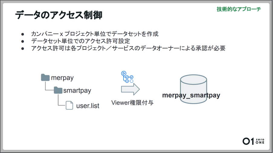 また、データアクセスもデータセット単位で制御しています。データアクセスは不要なデータにアクセスできないようにするために、必要最小限にする必要があります。