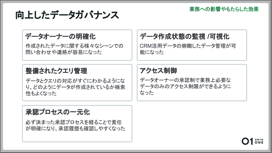 さらにデータガバナンスの側面でも大きく5つの定性的な効果が得られました。