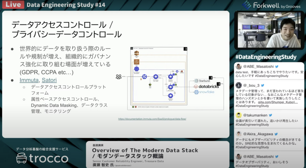 データガバナンスの最後のテーマである、「データアクセスコントロール」と「プライバシーデータコントロール」についてお話ししていただきました。