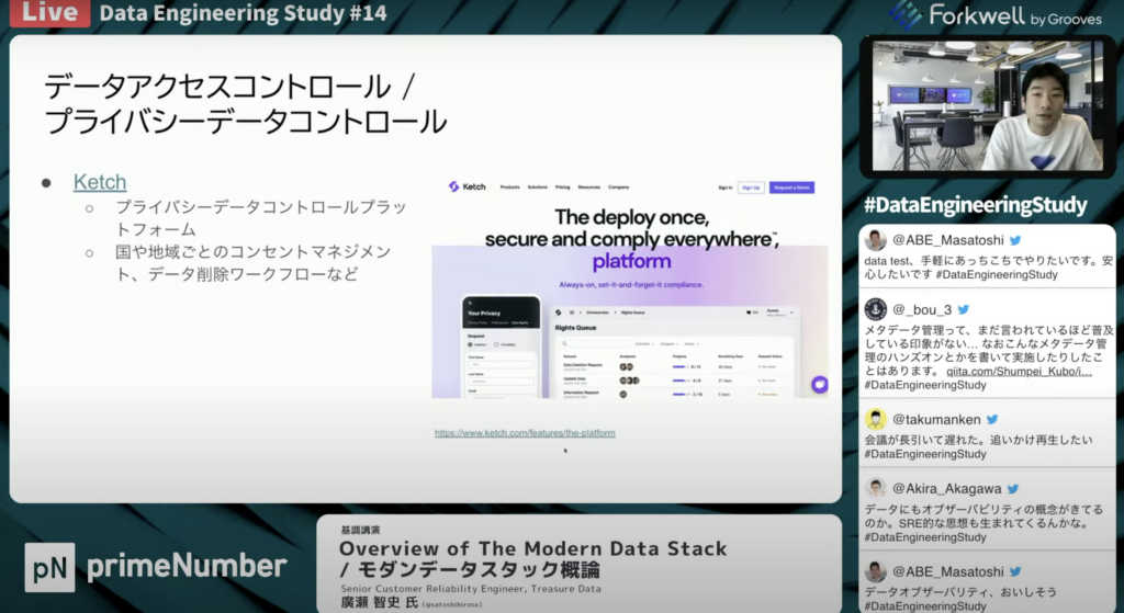 廣瀬 智史氏:「Ketchというサービスはプライバシーデータコントロールプラットフォームを謳っています。プライバシーデータは規制の変化が多く取り扱いに専門的な対応が求められます。
