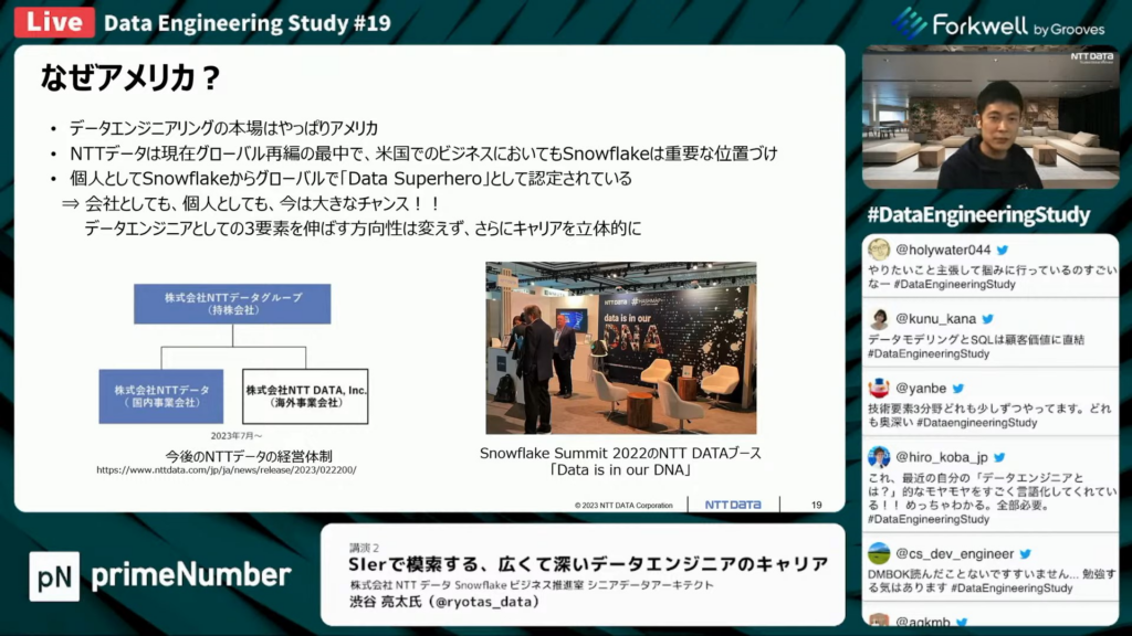 そんな中で私は個人として、Snowflakeからグローバルでデータスーパーヒーローとして認定されており、会社としても個人としても、アメリカに注力していくことが大きなチャンスだと捉えています。