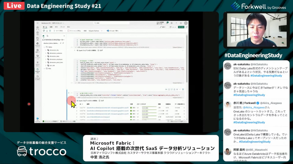 中里氏:「最後のセルでは、集計した結果をOneLakeにDelta Lakeの形式で永続化しています。