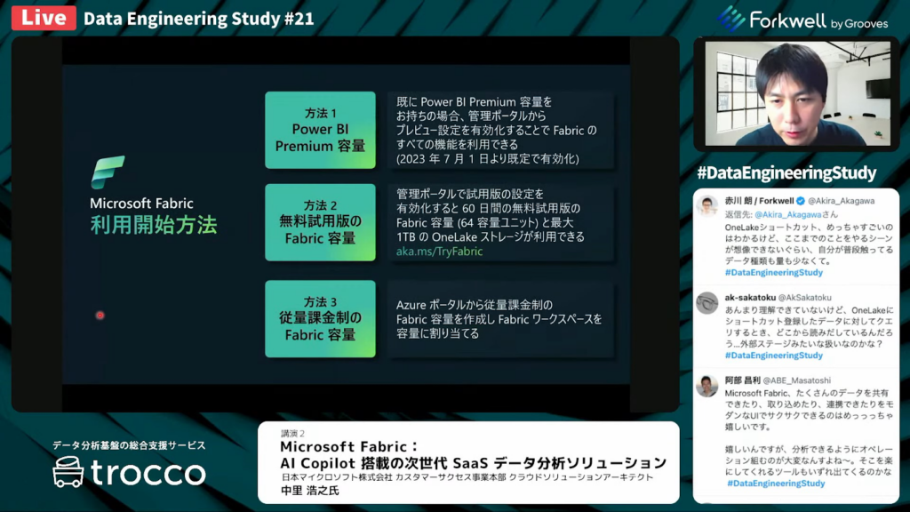 ぜひFabricの無料トライアルを試していただけるとありがたく思います。aka.ms/TryFabricから無料トライアルを開始いただけます。」