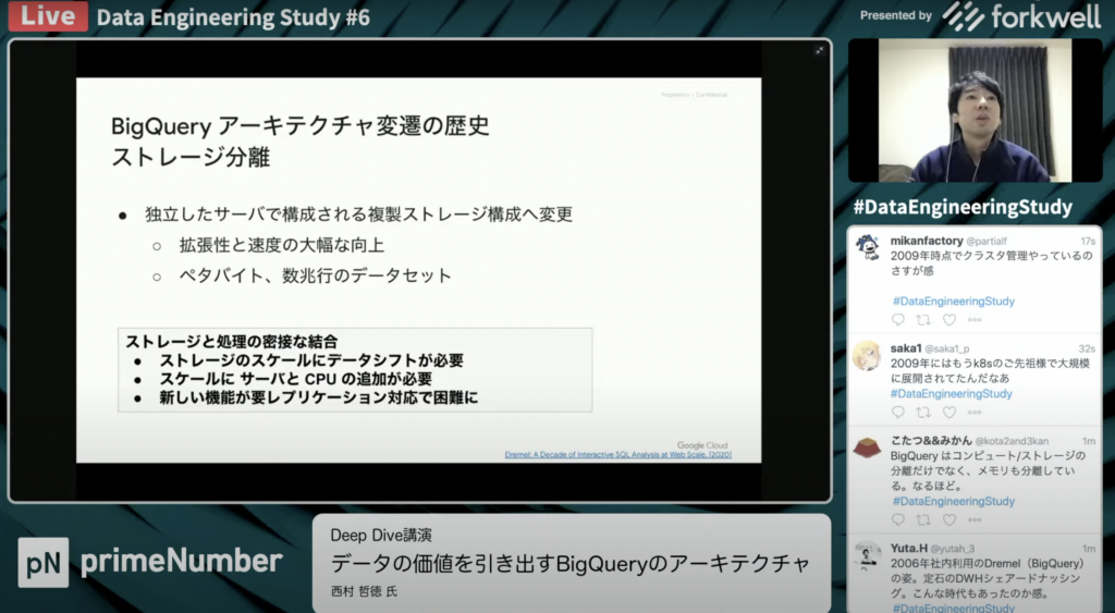 Deep Dive公演では、グーグル・クラウド・ジャパン合同会社でアナリストをされている方をお呼びし、BigQueryのアーキテクチャについてどのように進化してきたかという歴史的な経緯からお話いただいています。