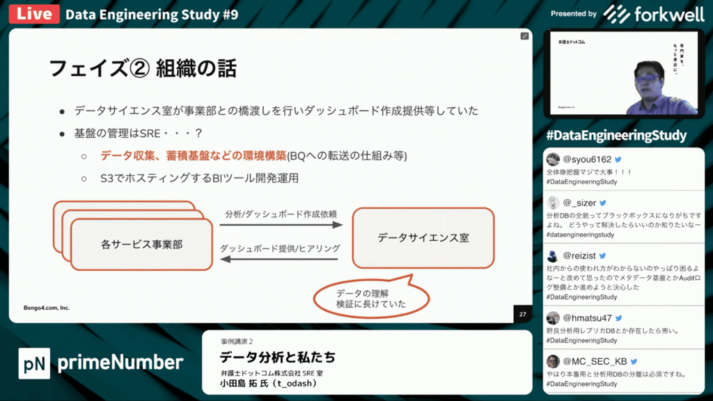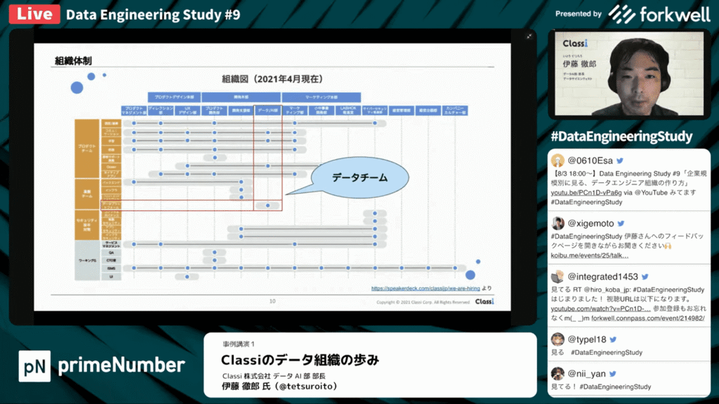 データエンジニアリングの組織の話を中心に、現在の組織体制について詳細をお話しいただきました。