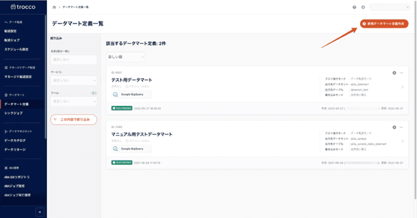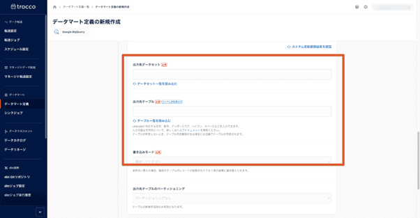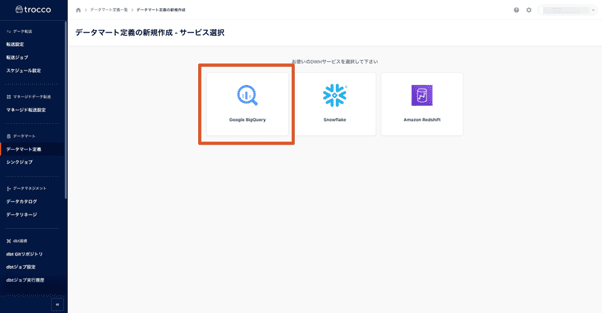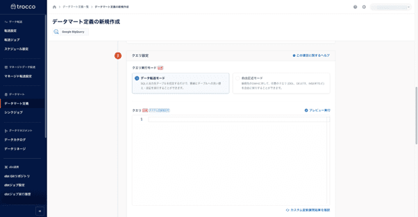TROCCO®を利用することでDWH(今回はGoogle BigQuery)のコンソール画面に触れることなくデータのETL&ELTを行い、データ分析用のデータマートを作成できます。