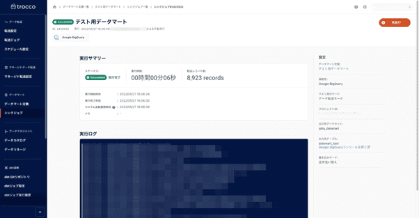 ETLジョブを設定・実行し、Google BigQueryのコンソール画面から確認してみると、たしかにデータが転送されていることが確認できます。