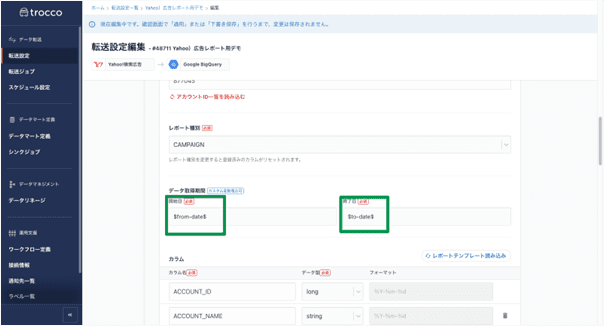 このように日時に関するカスタム変数を埋め込むことで、人の手でデータの取得期間を設定しなくてもデータが転送された時点を基準に一日前のデータを自動的に取得するという差分転送の設定ができました。