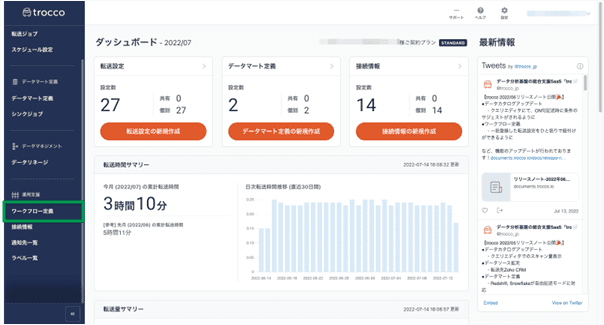 TROCCO®のトップページに戻り、「ワークフロー定義」をクリックします。