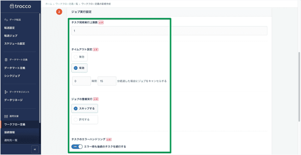 後の工程で定める流れに沿ってワークフロージョブが実行されますが、途中のジョブで何かしらのエラーが起きてしまったケースなどを考え、設定を行います。