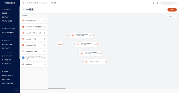 そこで今回はデータ分析基盤構築サービスTROCCO®を利用し、DWHのコンソール画面を触ることなくデータELTを実装するとともに、サンプルデータのETLから分析用のデータマート作成(ELT)という一連の流れを自動化させてみます。