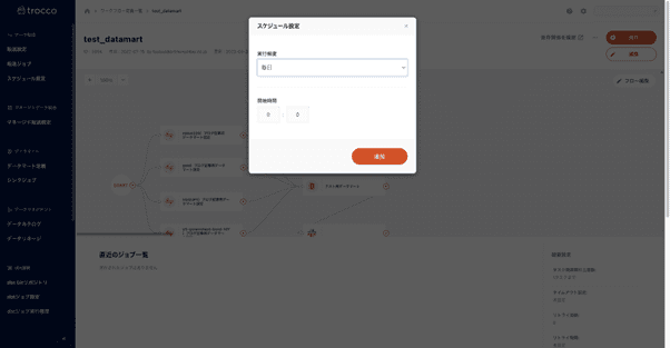 並列に実行した4つの転送ジョブの終点をデータマートの始点につないでいるため、4つの転送ジョブが完了し次第ELTジョブが実行されます。