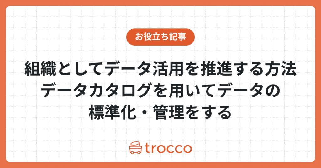 本記事では、組織でデータ活用を促進するための具体的なステップと戦略を紹介します。また、その手段としてメタデータの整備を挙げ、メタデータの整備をするには必要となるデータカタログの活用についても触れます。本記事が、組織のデータ標準化を推進する一助となれば幸いです。