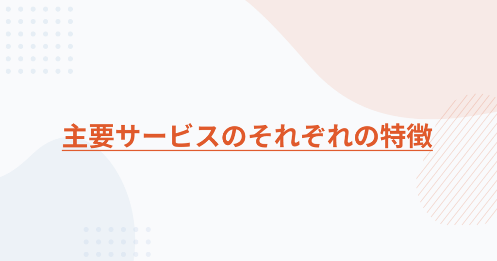 ここからは、それぞれのサービスの特徴を説明します。どのサービスを利用するか迷っているという方はぜひご覧ください。