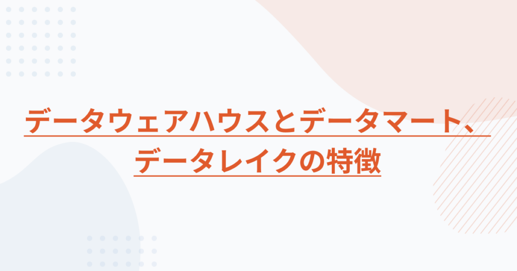 ここでは、データウェアハウス、データマート、データレイクのそれぞれの特徴を解説します。