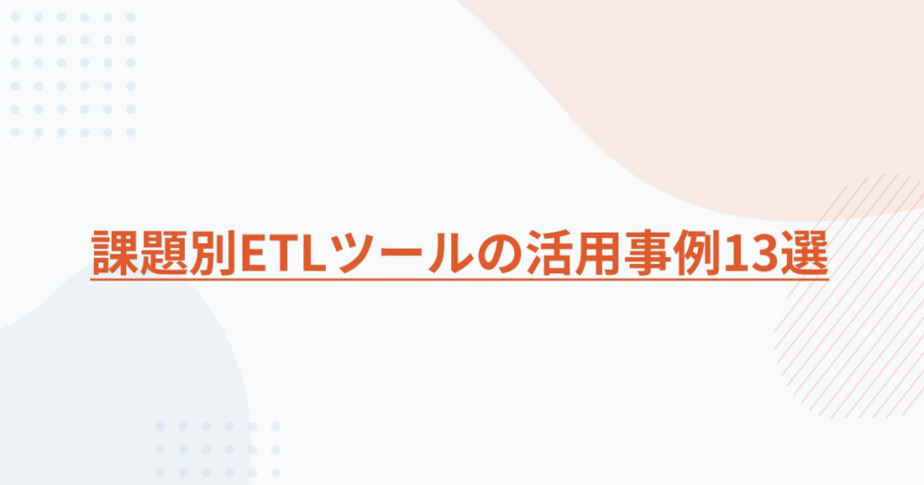 本記事では、ETLツールの概要やメリットを踏まえ、ETLツールの活用事例を業種・課題別に分け、詳しくご紹介しました。