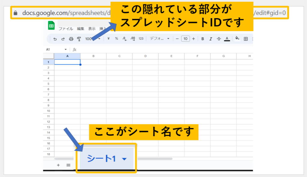 スプレッドシートシートIDは、スプレッドシートを開いたときのURLから確認できます。