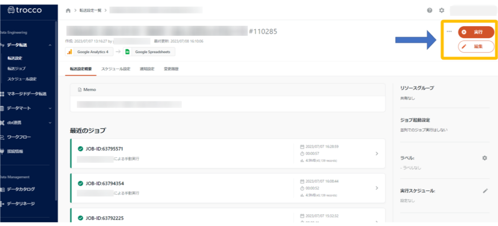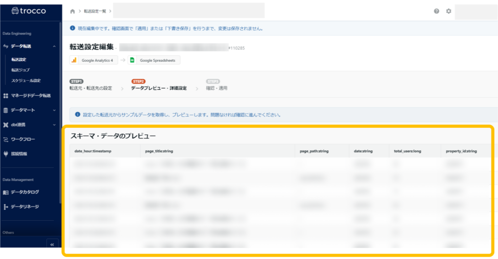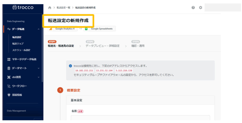 1.trocco®でGA4 → Google Spreadsheetsの転送自動化