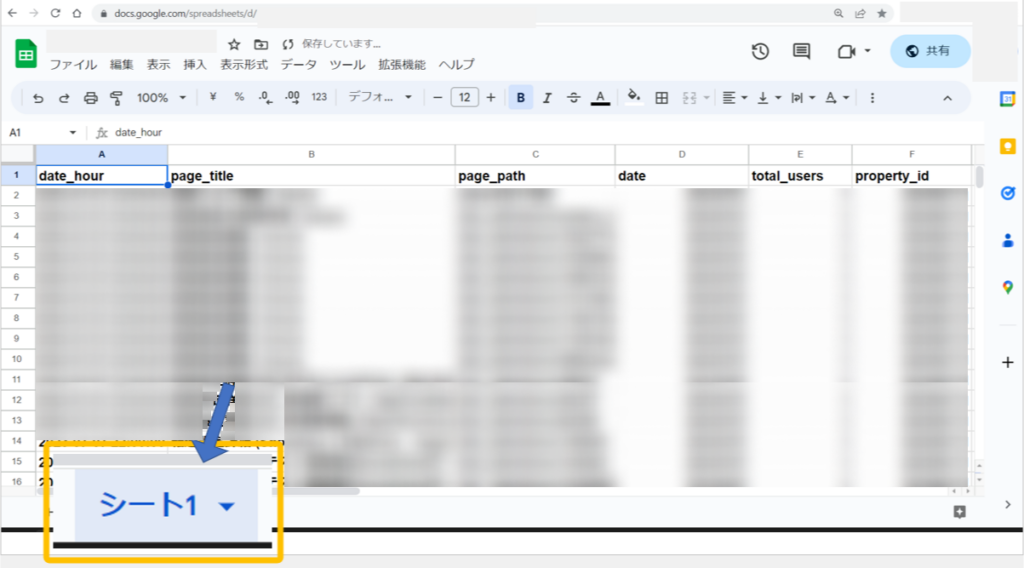 実行プロセス完了後Googleスプレッドシートを開くと、実行したデータが反映されていることが分かります。