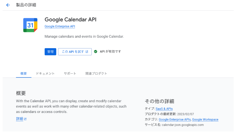 そこで、まずはGoogle Cloudのプロジェクトを用意し、Google Calendar APIを有効にします。