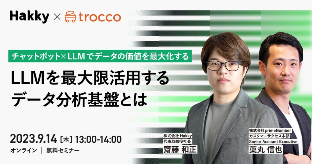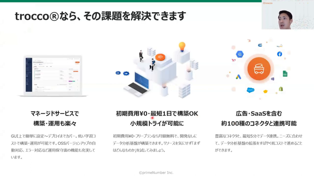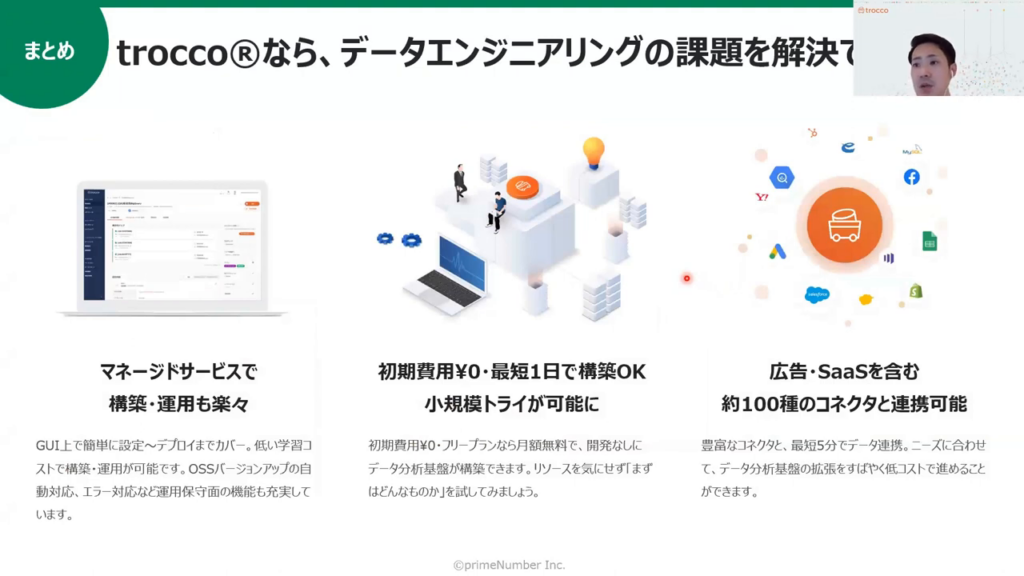 ※本イベントレポートの内容は2023年9月当時のものです。TROCCO®の利用や接続オプション等の利用の詳細について知りたい方はprimeNumberまでお問い合わせください。