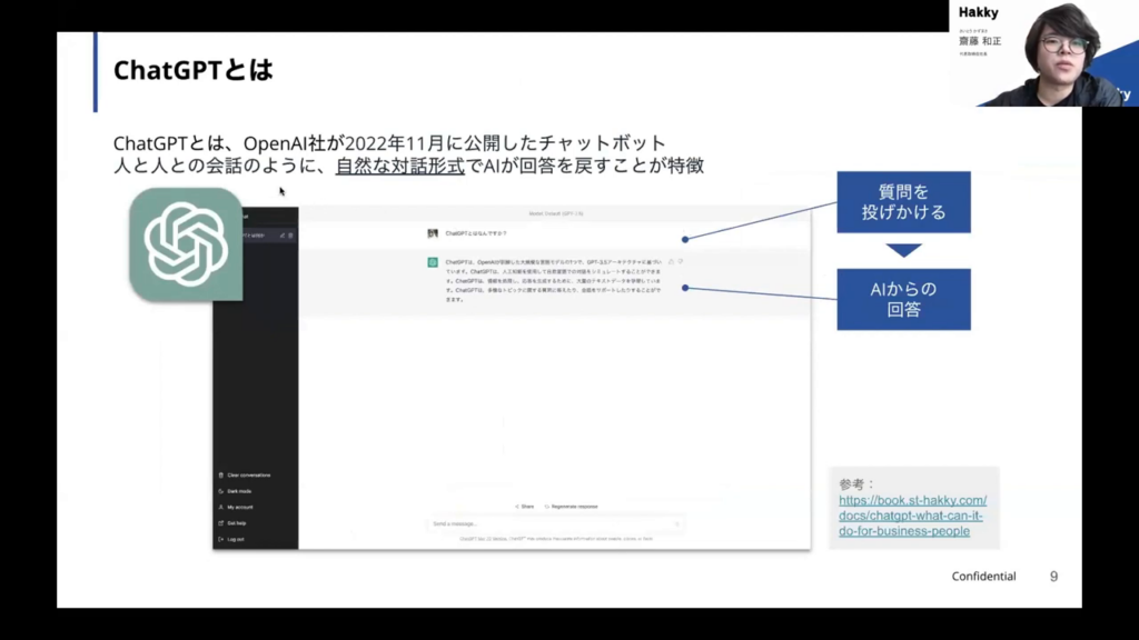 齋藤氏:「ChatGPTは、OpenAI社が2022年11月に公開したチャットボットです。