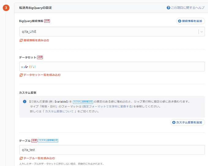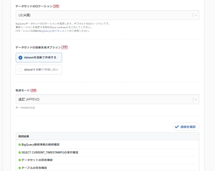 1-4. 転送先BigQueryの設定