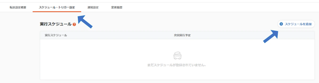 「スケジュール・トリガー設定」タブを開き、スケジュールを追加します。