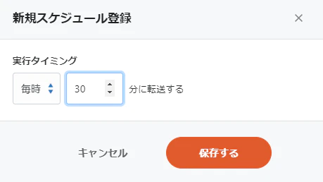 以下のように実行スケジュールを設定することで、転送を定期的に実行し自動化することが出来ます。