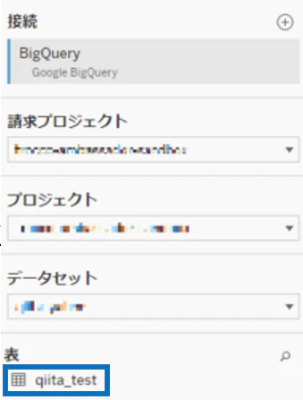 「接続情報を追加」ボタンからBigQueryの接続設定を行い、データベース・テーブル・データセットのロケーションを指定します。