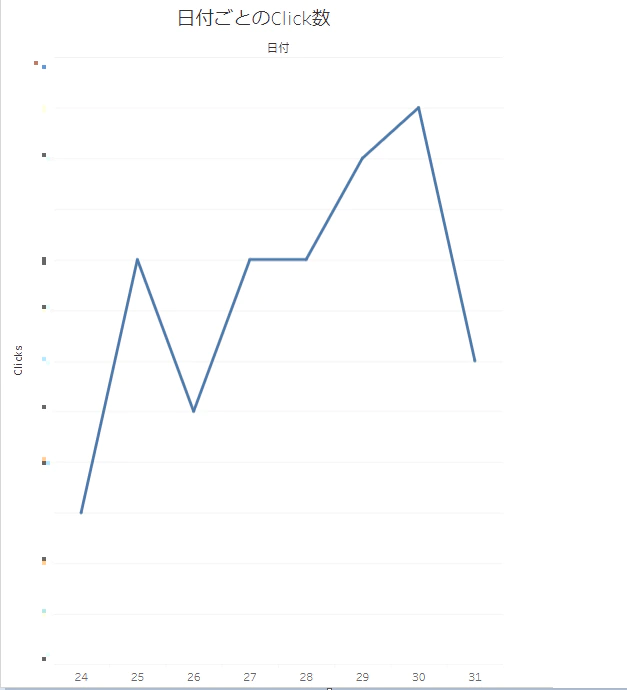 例えば、日付ごとのクリック数を分析したいときはディメンションに「Day」、メジャーに「Clicks」を選択し、線グラフを選んでみます。