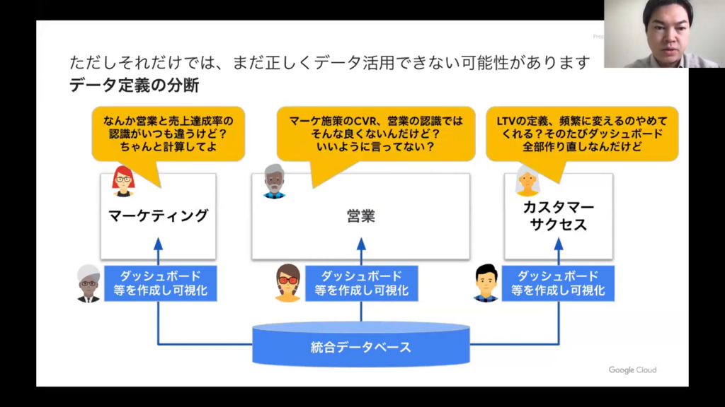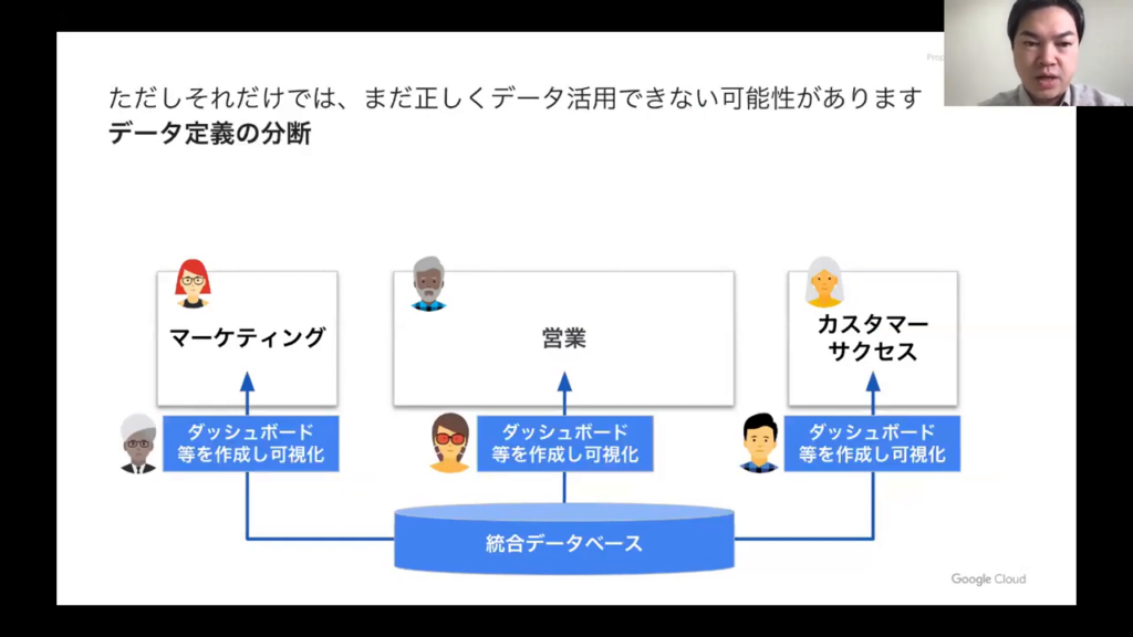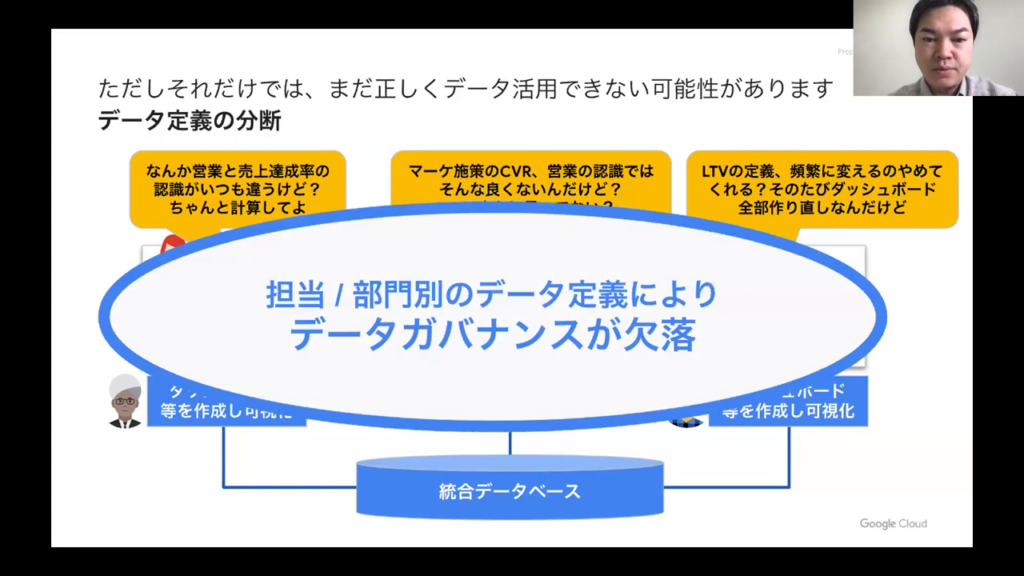今井氏:「スライドでは、これを「データガバナンスが欠落」と表現しています。つまり、データの定義がルール化されておらず、統一的な理解がなされていない状態です。」