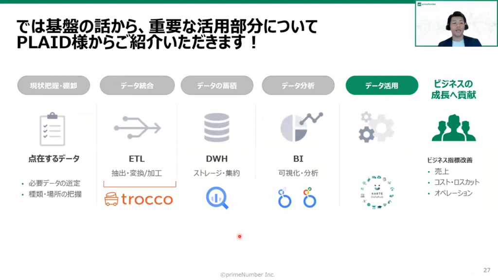 私たちの会社では、これを単なるBI(ビジネスインテリジェンス)ツール以上のものと捉えており、データガバナンスを統括するデータ活用プラットフォームとしてご紹介しています。」