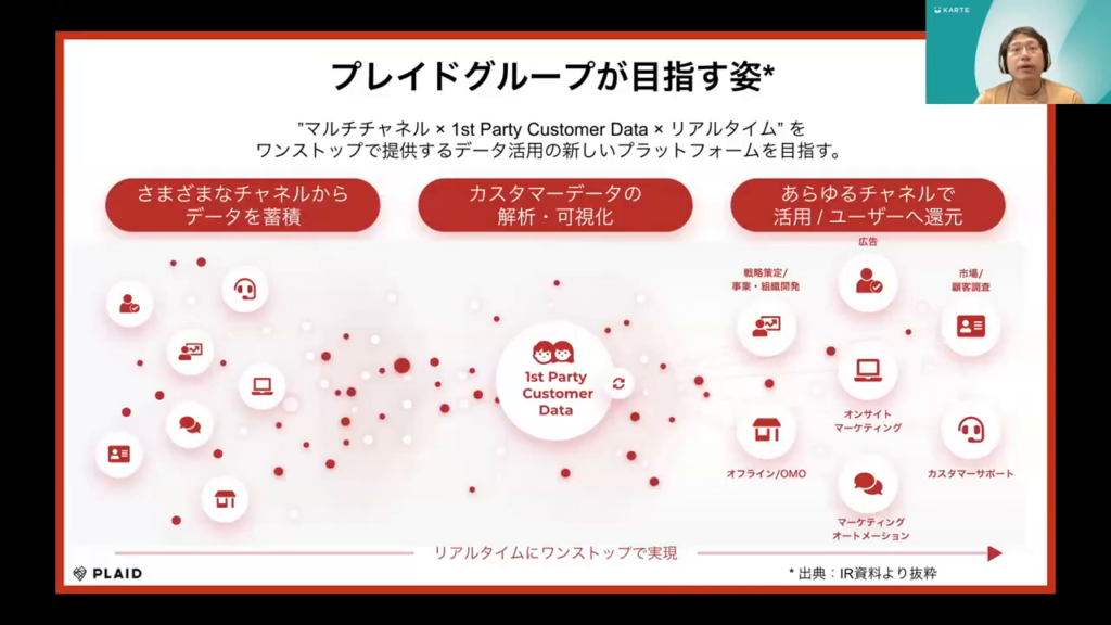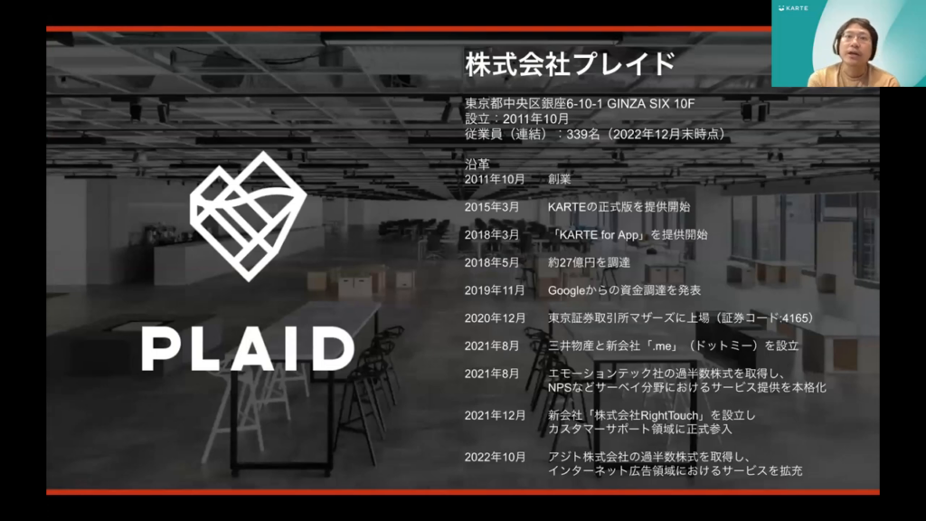 石塚氏:「私たちのプロダクト、KARTE / KARTE DataHubの利用について、具体的なメリットをお伝えします。