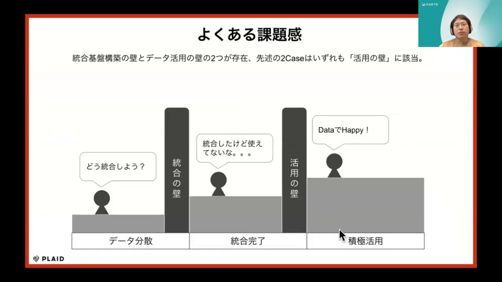 紹介した二つの事例は、この「活用の壁」にアプローチしています。このデータ活用の壁を中心に、事例を紹介していきます。」
