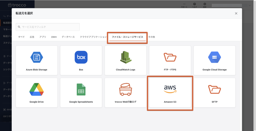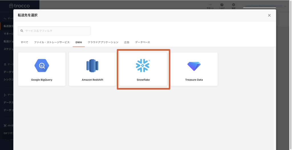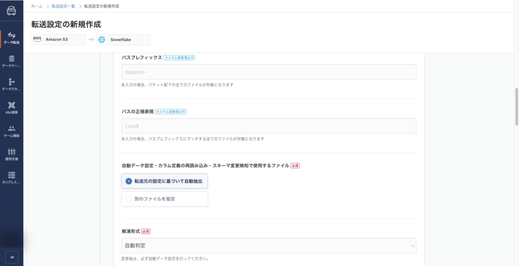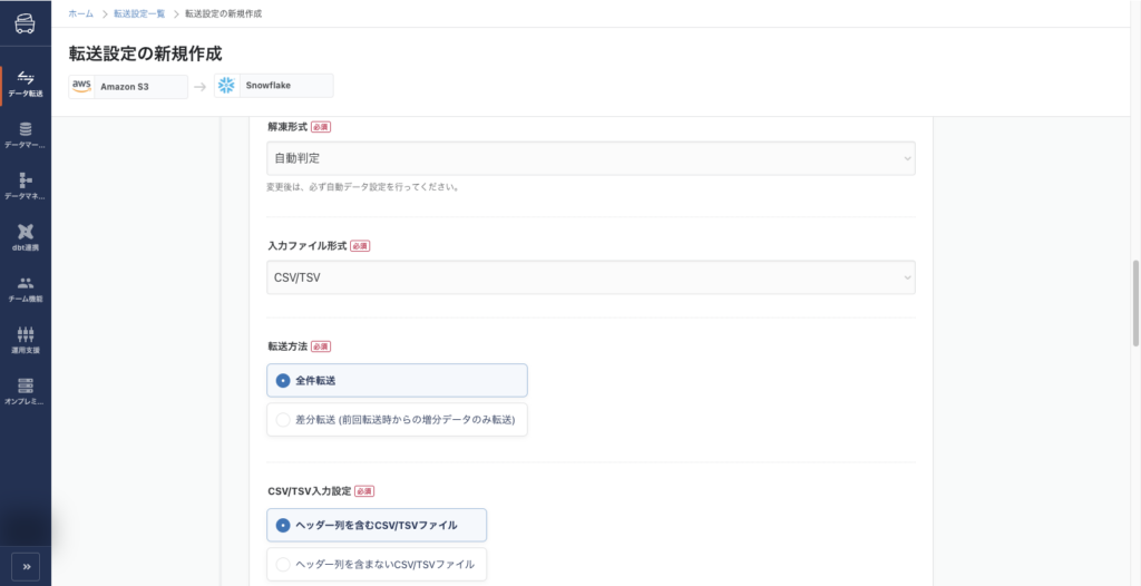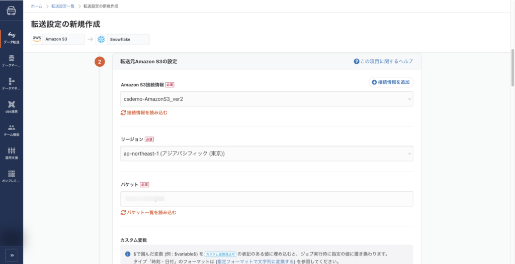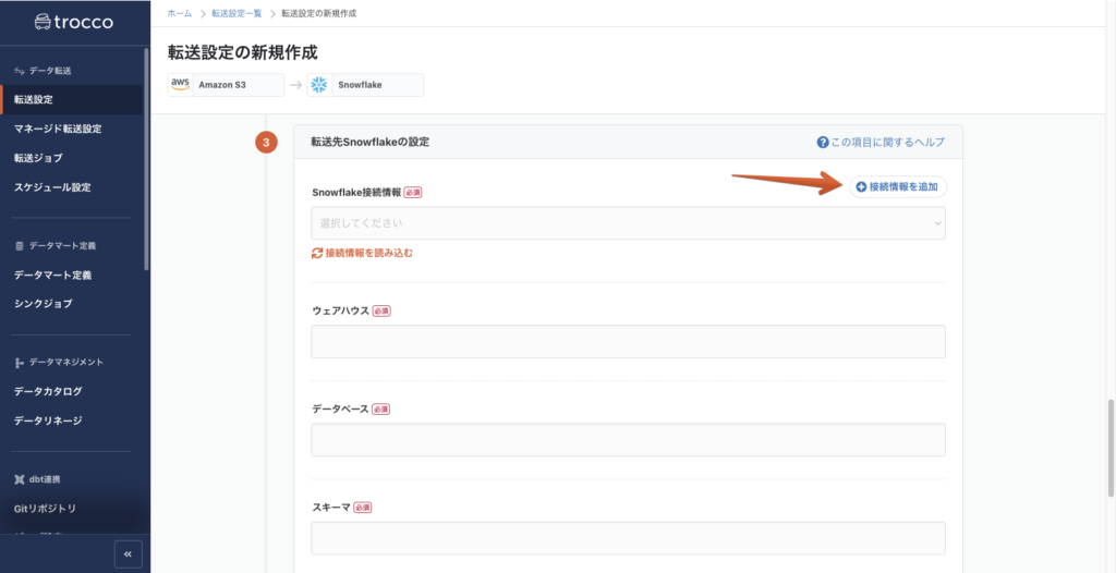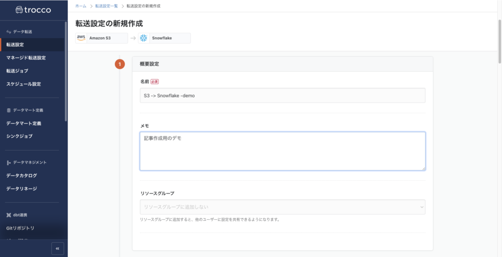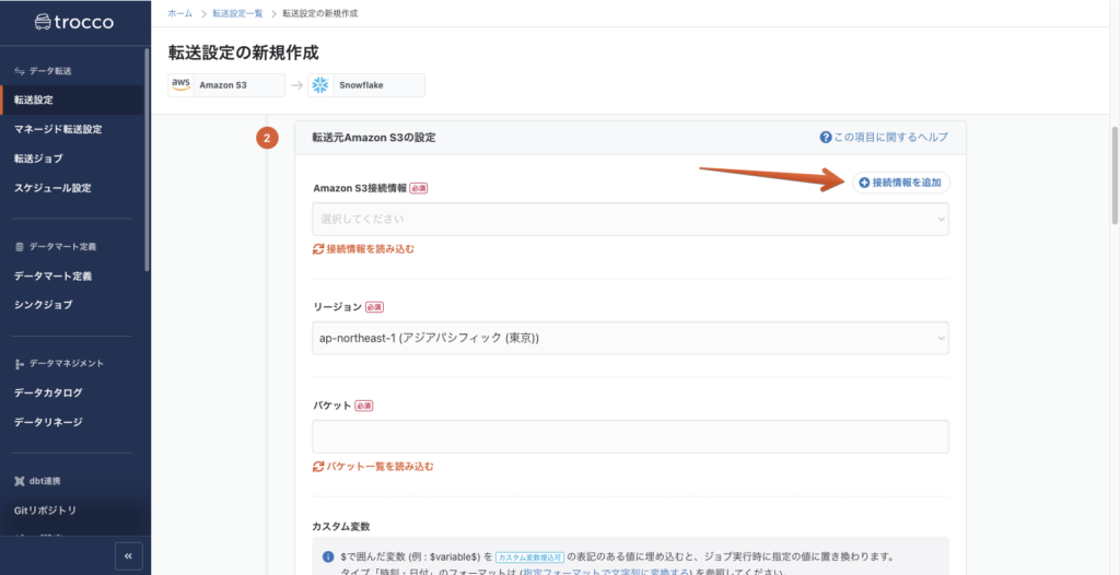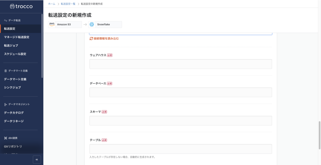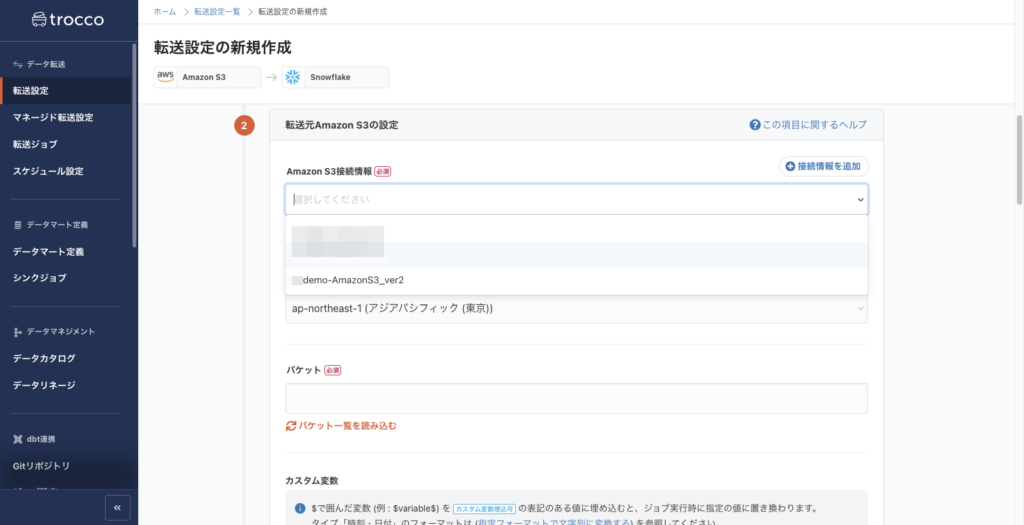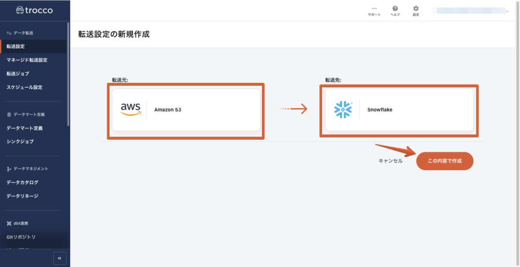 1. TROCCO®でAmazon S3 → Snowflakeの転送設定