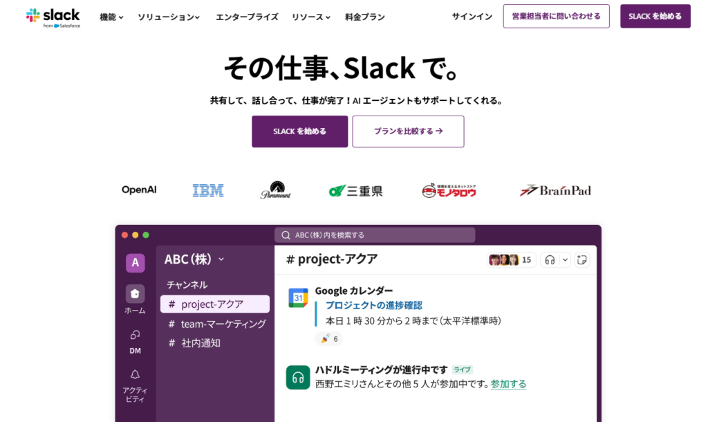 『Slack』とSalesforceを連携することで、Salesforce上の更新情報をSlackのチャンネルやダイレクトメッセージに自動通知できます。