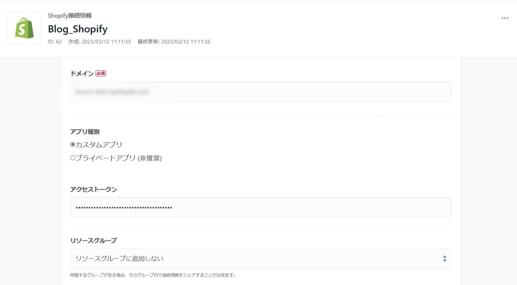 別のタブで接続情報の新規作成画面が開きますので、名前、ドメイン、アプリ種別、アクセストークンなどの必要事項を記入して保存ボタンを押します。