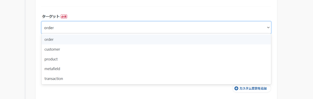 今回はターゲットの対象を「order」にしてデータを取得します。