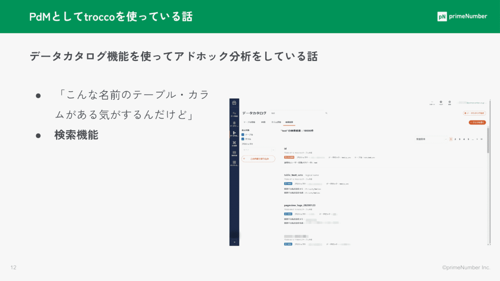 廣瀬 智史:「次に、データカタログ機能を使用して、アドホック分析をPdMとして行っている話をします。