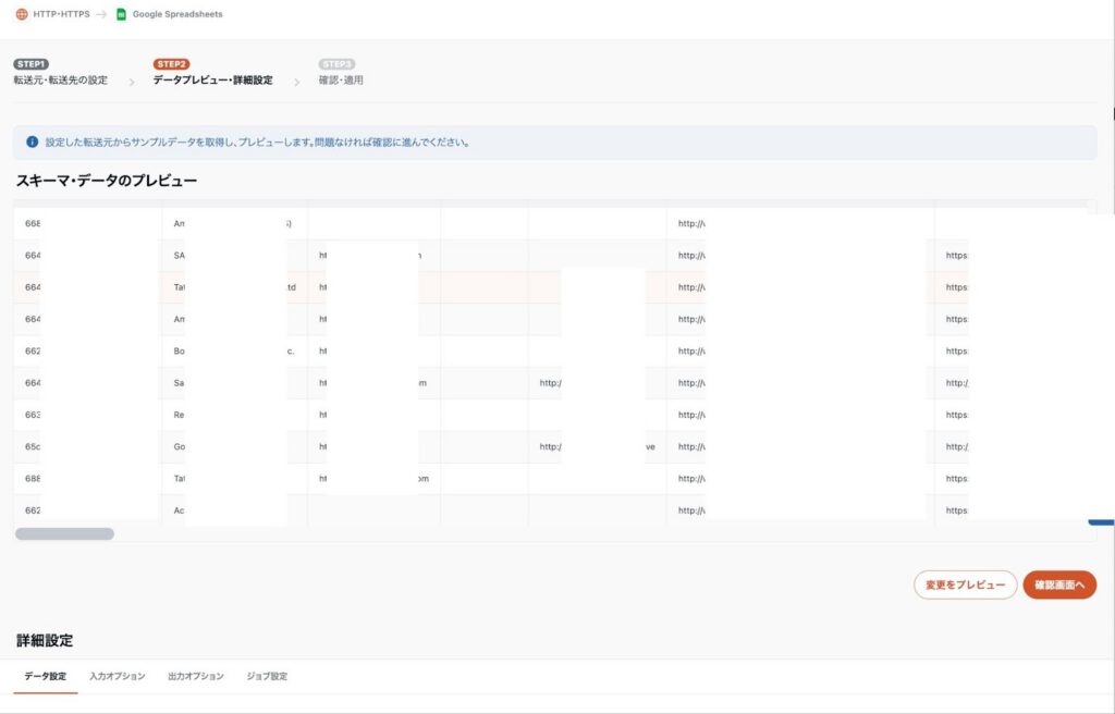 「次のSTEPへ」ボタンを押すと、スキーマのカラムマッピングが自動的に実行されます。