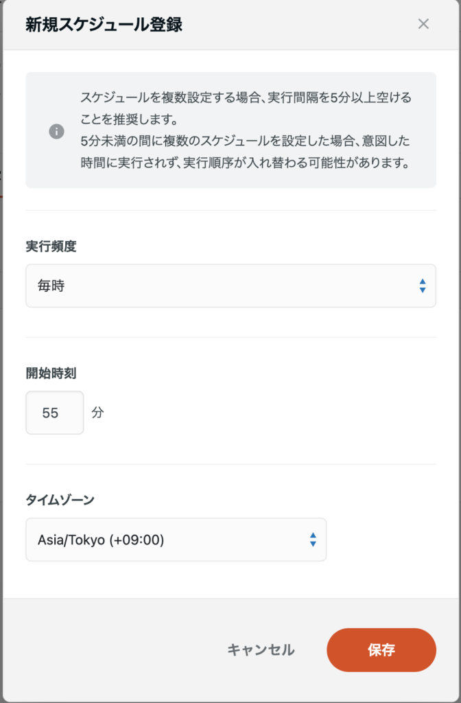 - [スケジュールを追加] をクリックしスケジュール登録を行います。