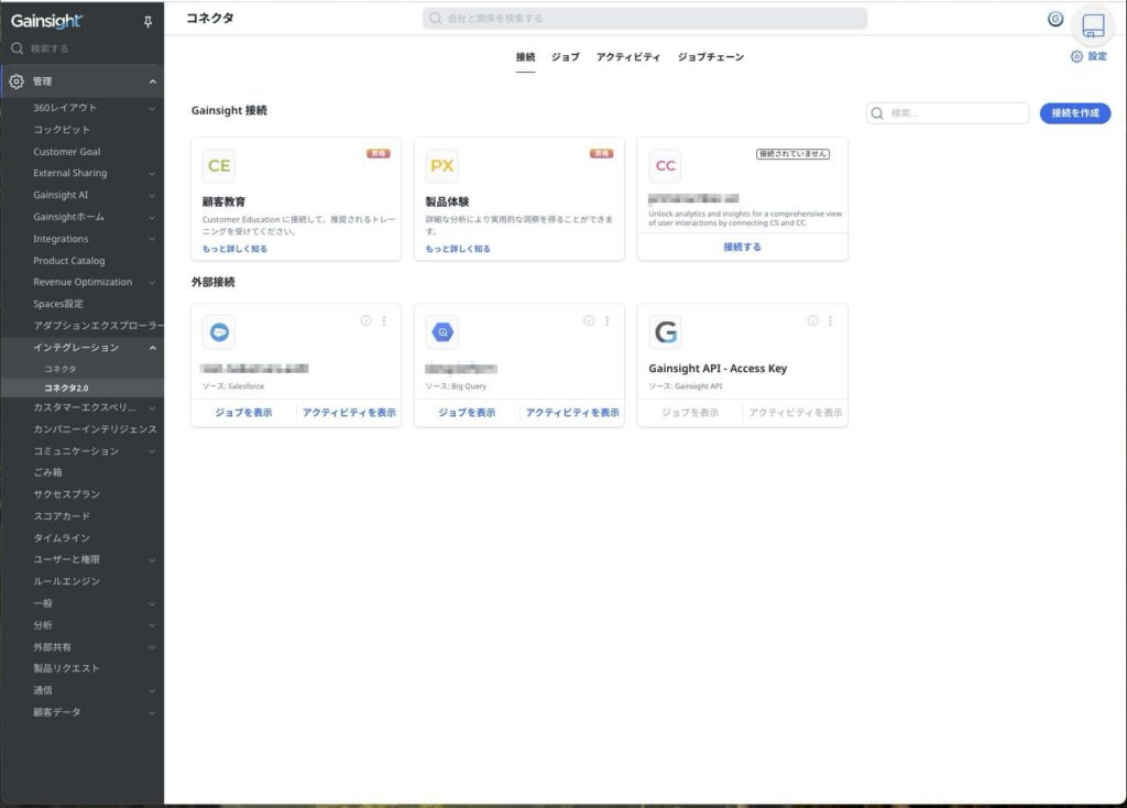 管理 > インテグレーション > コネクタ2.0