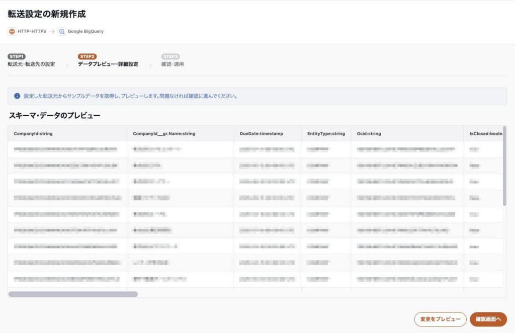 - カラム名が変換され、BigQueryに転送してもエラーにならない形式になります。