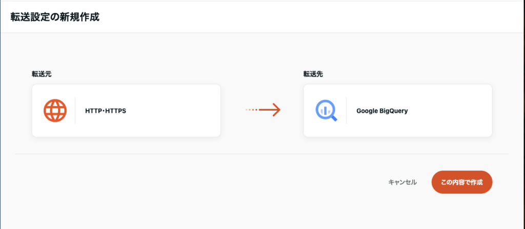- 「転送先」では今回は Google BigQuery を選択します。