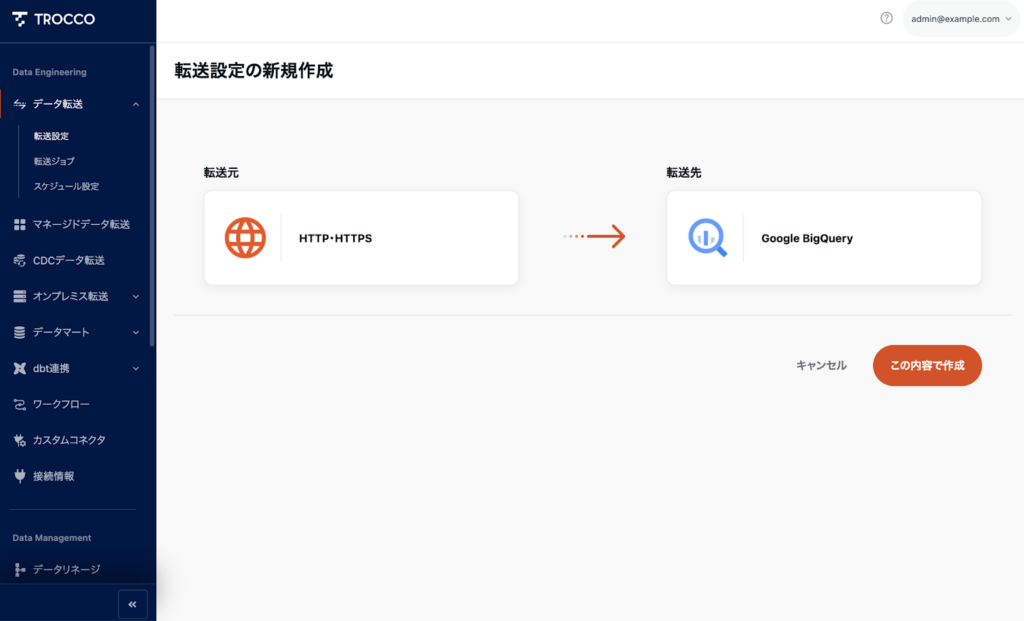 ※ 転送元HTTP・HTTPSコネクタは TROCCO の Advanced プラン以上のプランでご利用いただける機能です。