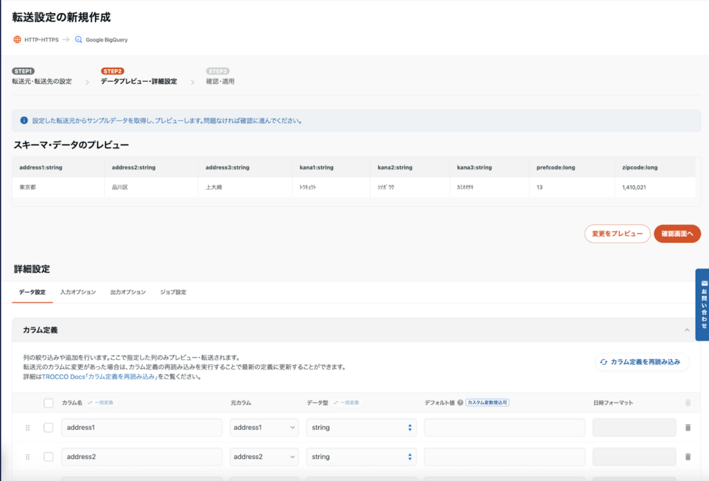 - TROCCOが自動的にカラム名・データ型を推論します。