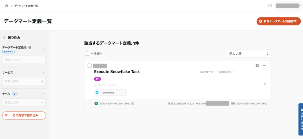 次にSnowflake Taskを実行するデータマート定義を作成します。