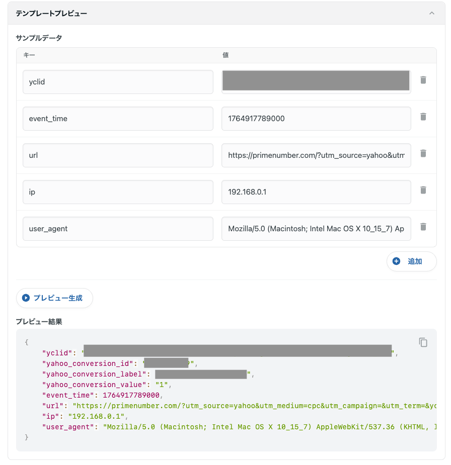 Yahoo検索広告コンバージョンAPIのエンドポイントとリクエスト形式を設定することで、GUIベースでの連携が実現します。